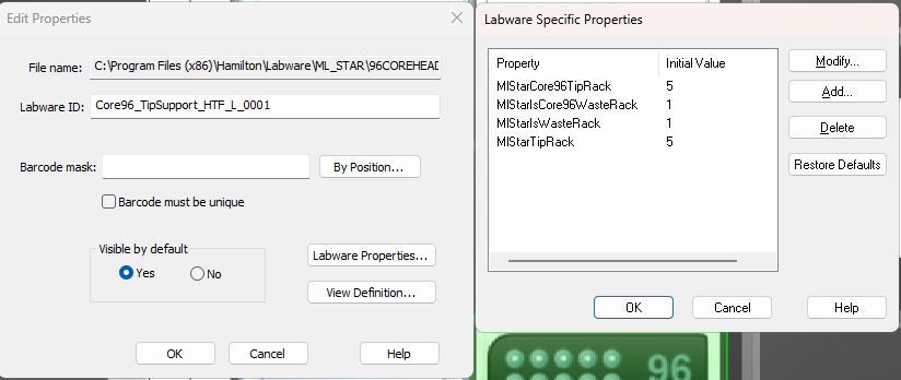 Can I ask what your Labware Specific Properties are for your Tip Support?