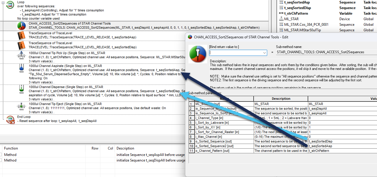 I’m writing a method that transfers volumes from a 96-well plate to a 384-well microplate using 8 1000uL channels. I have my microplate split into 4 quandrants of 96-wells for generating replicates. So A1,B1,… , G1, H1 will end up in the microplate positions of the same position. When this method is run our STARlet is able to draw up all 8 volumes from the 96-well plates, but when it dispenses into the microtiter plate because of the well spacing, it will individually pipet each target well one at a time shifting the channels between transfers. It’s much more efficient to pick up every other sample from the 96-well plate (A1, C1, E1, F1, B1, D1, G1, H1) and then dispense them in the same wells of the 394-well plate, so that 4 channels can be operating at a time. My method supports up to 480 samples at a time, and I’m adjusting the end position of my target sequence to match the number of samples so I don’t think I can preserve this dynamic sample sequence if I program the target sequence skipping every other well.