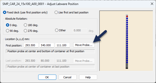 So I’m trying to teach the STAR a new rack using the “Use Probe” feature in the Hamilton Labware Editor, and every time I click “Move Probe”, it throws an error telling me that the default waste for the CO-RE 96 Head is missing. If the labware editor is using the deck layout that is currently loaded on my method editor, this shouldn’t be a problem since the waste is definitely there. The “Move Probe” works if I do it from the method editor with the containers pre-loaded in it, I was just trying to measure the rack without the containers using the labware editor. Is there something I’m missing? Thanks!