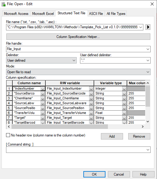 I’m reading in a .csv with File:Open and the column SourceBarcode contains both strings and integers. I’ve set the File:Open to read this column in as a string but when I retrieve column specification for the .csv, it seems to not read in the “NA” string and only read the numerical values. Does anyone know why this happens?