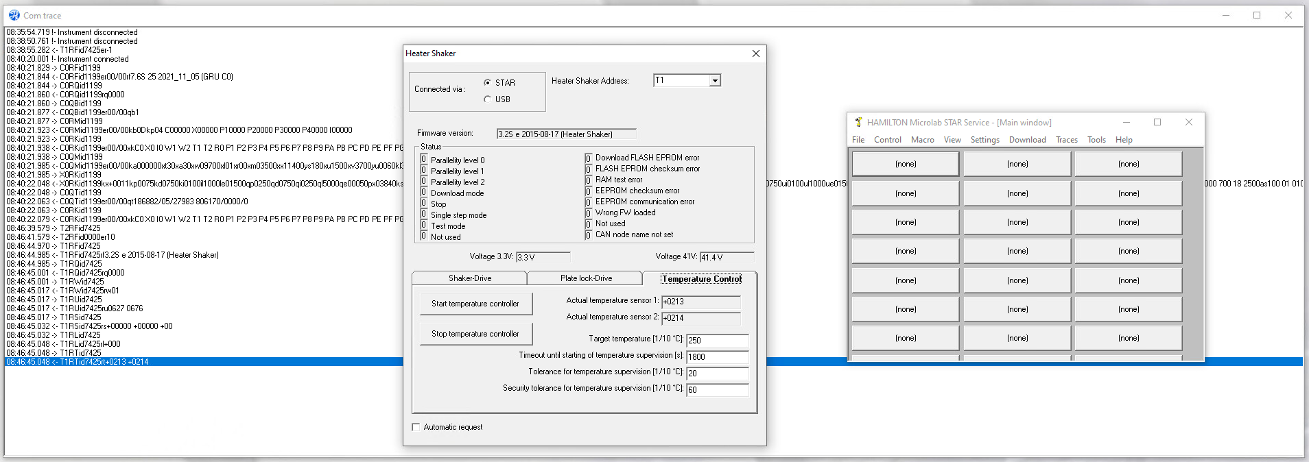 I am already using Firmware commands to receive the current maintenance status. I know that the STARService Tool uses firmware commands to connect to the HeaterShaker.