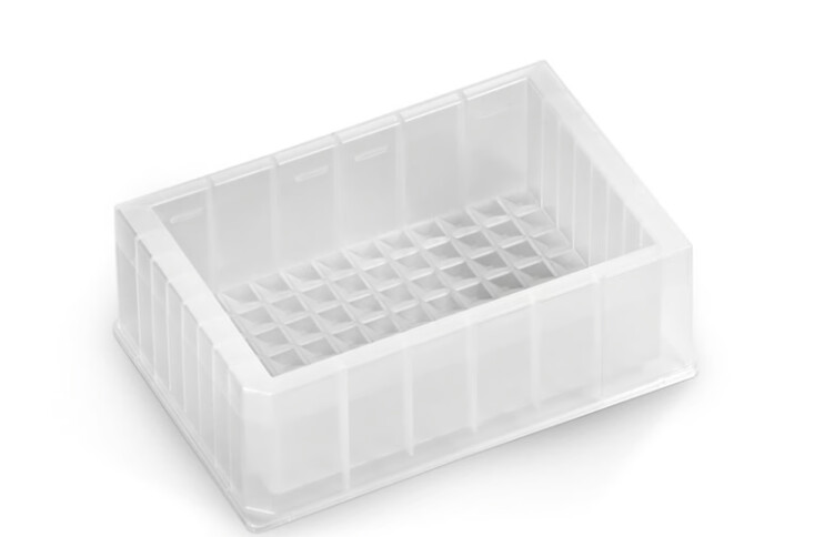 Glass Coated 96-Well Polypropylene 2.2mL Square Wells With V-Bottom Deep Well Plate, RNase and DNase Free, 10/PK not really the same thing but…