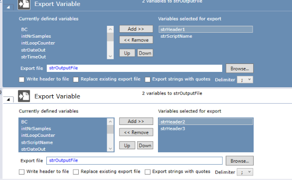 To compose the report, I use several Export Variable commands to write the variables in the rows I want them to be.