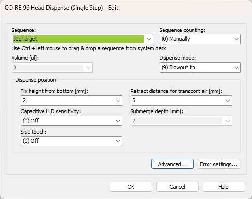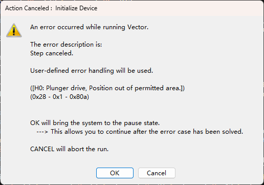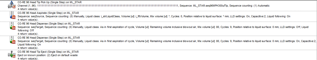 The SubMethod where the error occurred is shown below. It includes one Aspirate and two consecutive Dispense steps. I used two Dispense steps mainly to mix first at a fixed bottom position, then mix again at the liquid surface (I’m not sure if this setup is appropriate?).