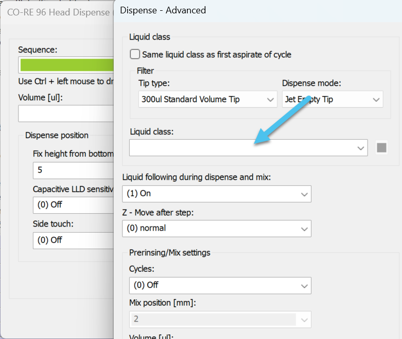 For the first dispense use the same volume that you aspirated (100.0), and on the second dispense use 0. The first dispense will dispense the liquid and perform the mixing at the bottom like normal. The second dispense will not actually dispense anything but will perform the mixing using cLLD.