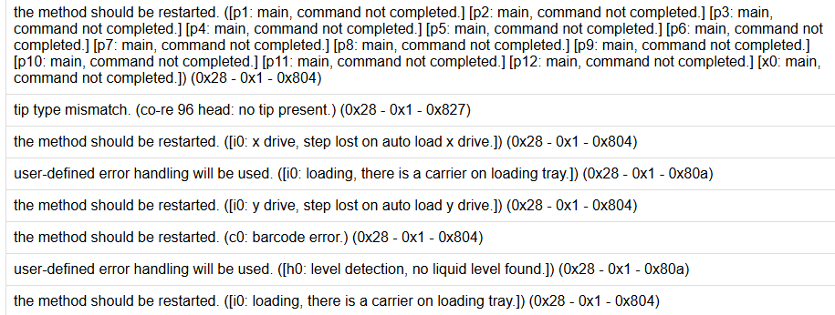 Hey thanks for the message, Pascal. So, actually, I think I’m more interested in the error descriptions displayed in the log files now that I think about it. Does Hamilton have a list of all possible error messages and possibly a list of potential causes for each error message? Sometimes the error message is descriptive enough for you to figure out what is going on, sometimes it is confusing.