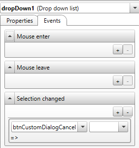 Unfortunately, it is not possible to have another object’s properties change based on a specific selection from a drop-down menu without first closing the dialog and binding the selection to a variable to appear in a new dialog. For any object in the custom dialog, there is a tab for Events that lists the available actions for an object which can affect another object’s properties. For drop-down, the only options are Mouse Enter, Mouse Leave, and Selection Changed, so while an object property can change when a user changes the selection, it can’t be based on the value selected (StartColumn doesn’t store the value until the dialog is closed).