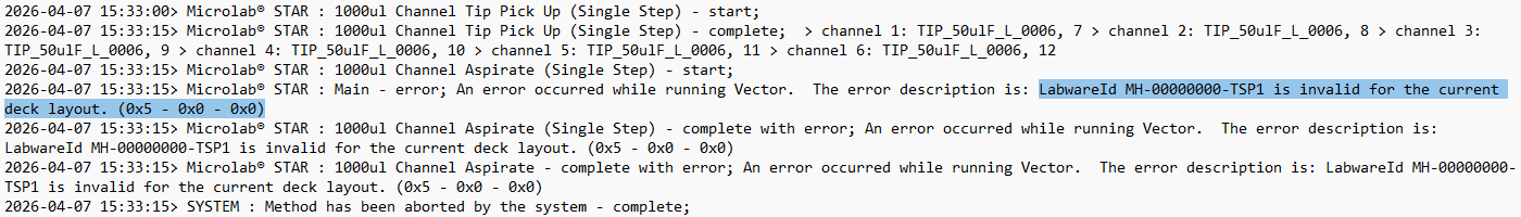 However, when the pipetting starts it picks up tips and then errors with the following message;