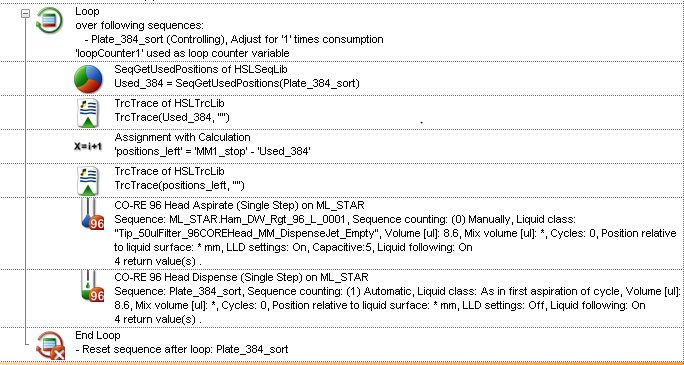 I feel like this probably has an easy fix, but I can not seem to figure it out. I’m looping over a large sequence and after each 96 channel pipetting step is done, I want to get the used position count and then subtract that by the total positions in the sequence to get the remaining number of positions left. The first pipetting step does change the used position count and the remaining positions count, and then it stays the same for the rest of the pipetting steps. If someone could please tell me what I’m doing wrong I would greatly appreciate it!