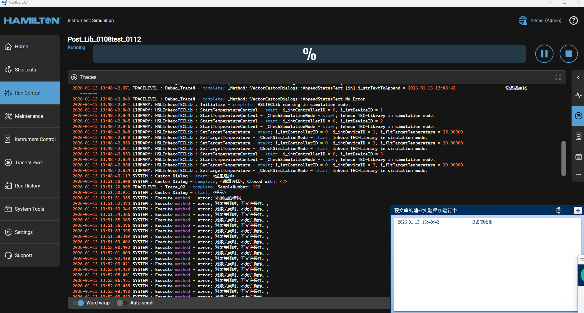There are 6 Stars+ 6 computers in our laboratory, and this issue has occurred on 2 of the computers recently. The error also occurs when running in Simulation mode. We are using Venus 6.0.1, and the error still persists when trying to run via Hx Run Control. The operating system is Windows 11.