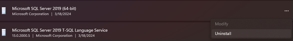 Yes, it’s possible to reinstall the SQL Server without reinstalling VENUS, as it’s a standalone application provided by Microsoft. It can be uninstalled through Windows Apps by following the prompts after selecting Uninstall.