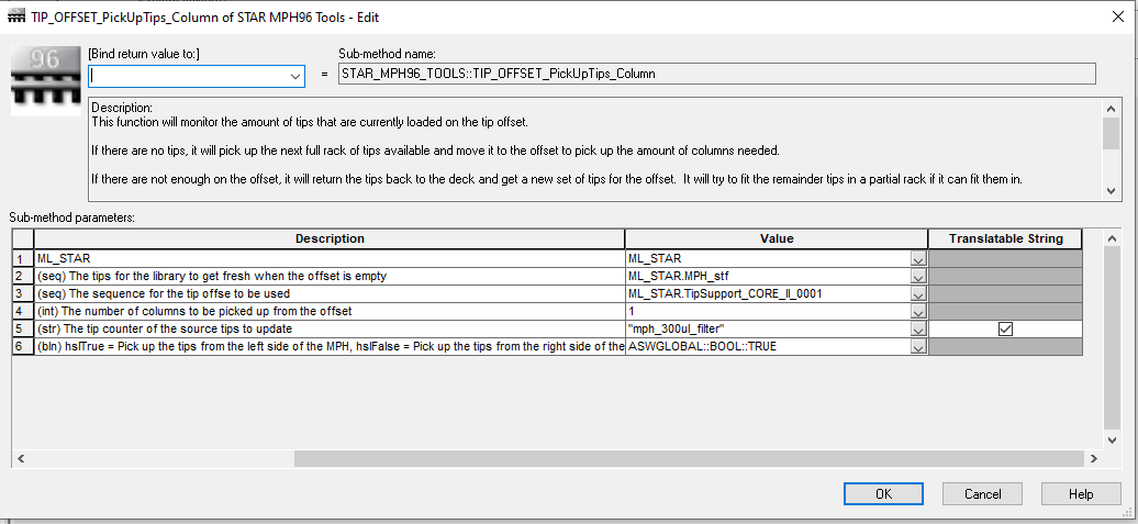 My settings for the TIP_OFFSET_PickUpTips_Column step: