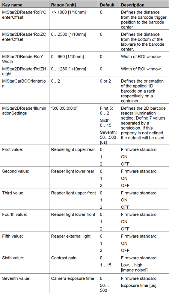 these are the properties we are using. we have been tinkering with the reader illumination setting so please ignore that one. the most up to date value we are using is “2;2;2;2;2;10;400”