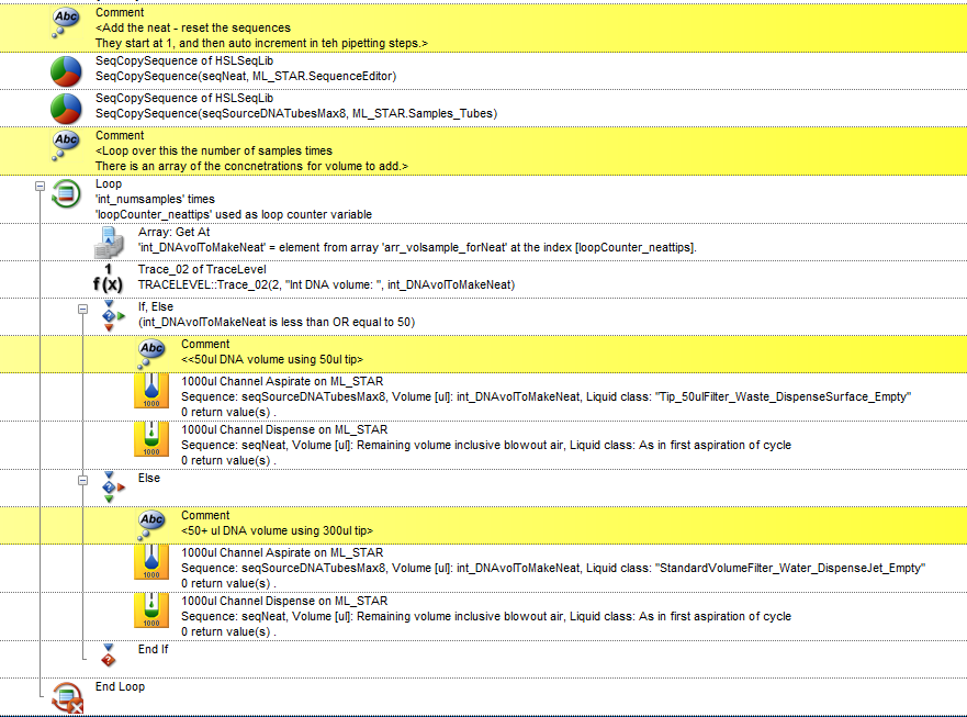 I have managed to create fairly simple methods and volume arrays, etc. from an Excel file. However, I am currently only using 300ul tips, but I would also like to be able to use 50ul tips when the volumes are lower.