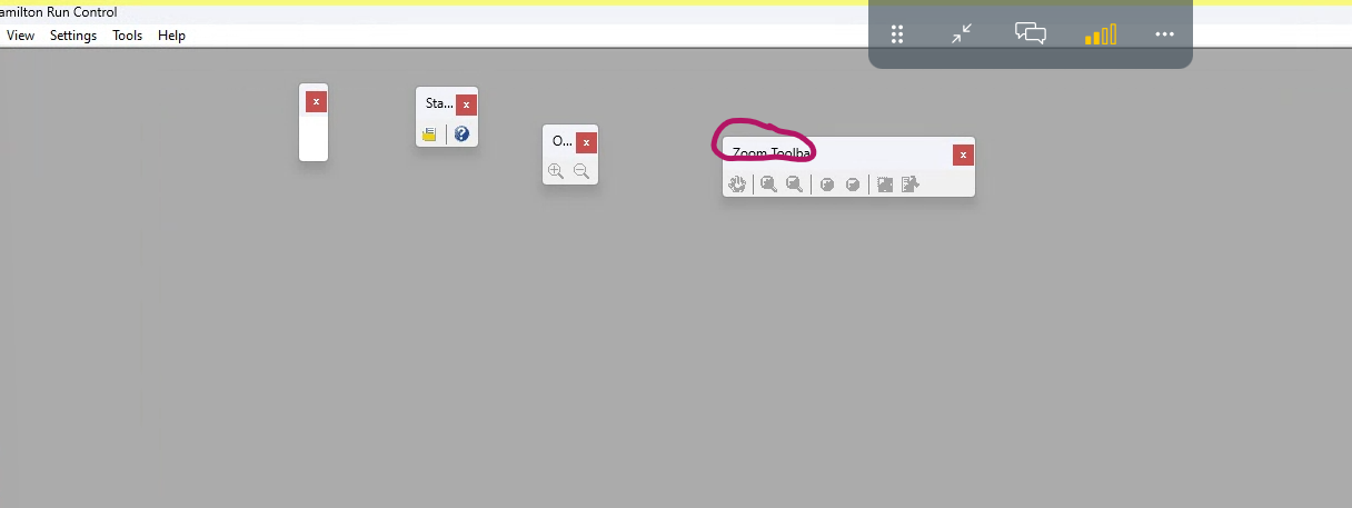 I am having an issue with my Run Control app tool bar floating around and no way to resize or dock it. Dragging it to the tool bar does not dock it, no way to resize by hovering over the edges of the windows, right click provides no options, double clicking the banner does not do anything. View tab in tool bar has status bar checked and all the floating windows checked. I have tried unchecking and rechecking them and they still float about in space. Has anyone had this issue before and been able to resolve it?