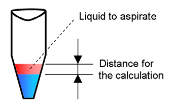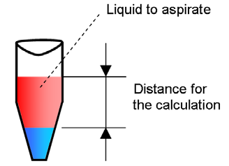 If Liquid Level Detection is not used, the liquid following speed will be calculated from the given fixed height above the well bottom where the aspiration should start with the known geometry of the tube. The system can calculate if this is a Case A or B: